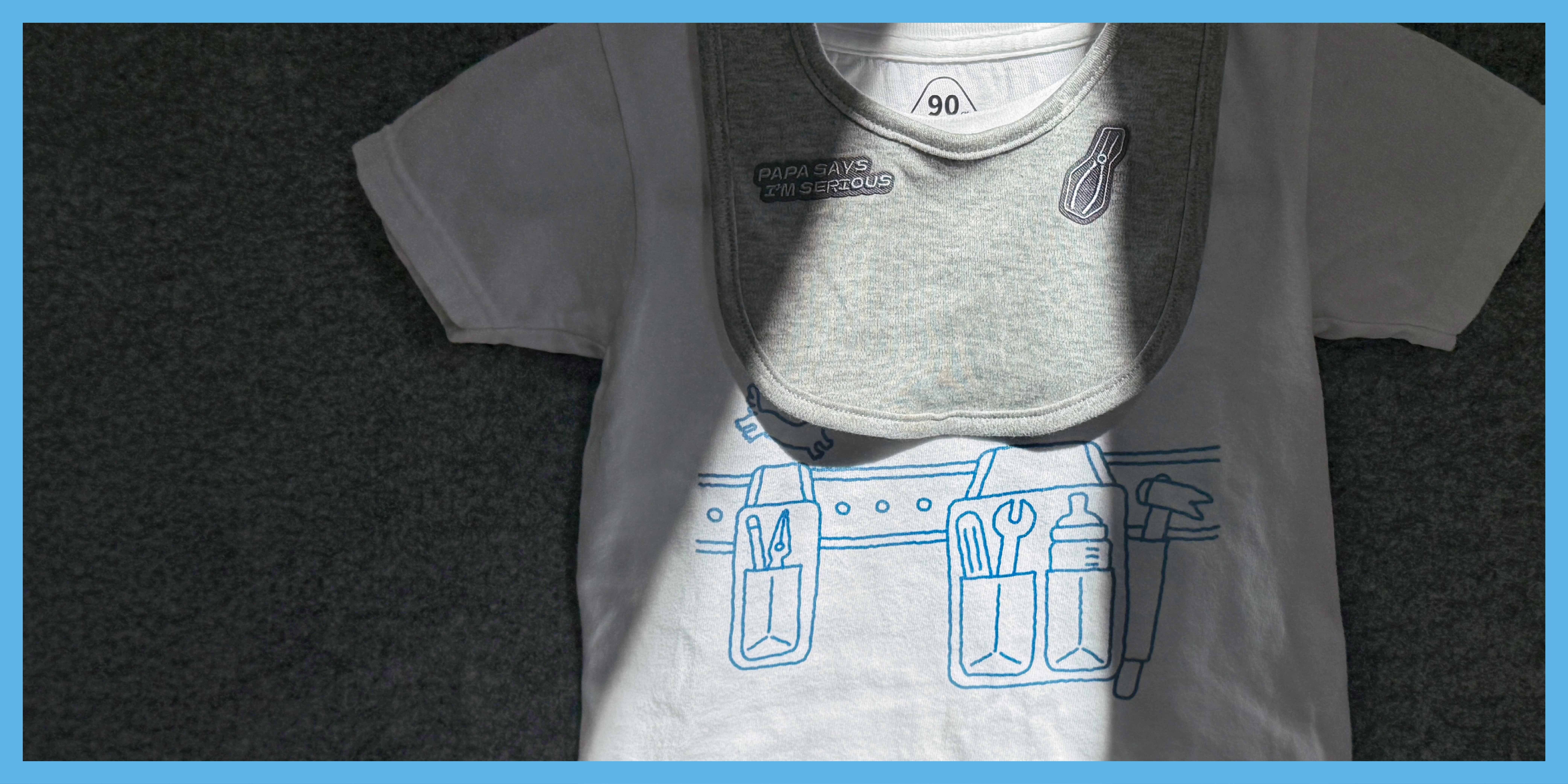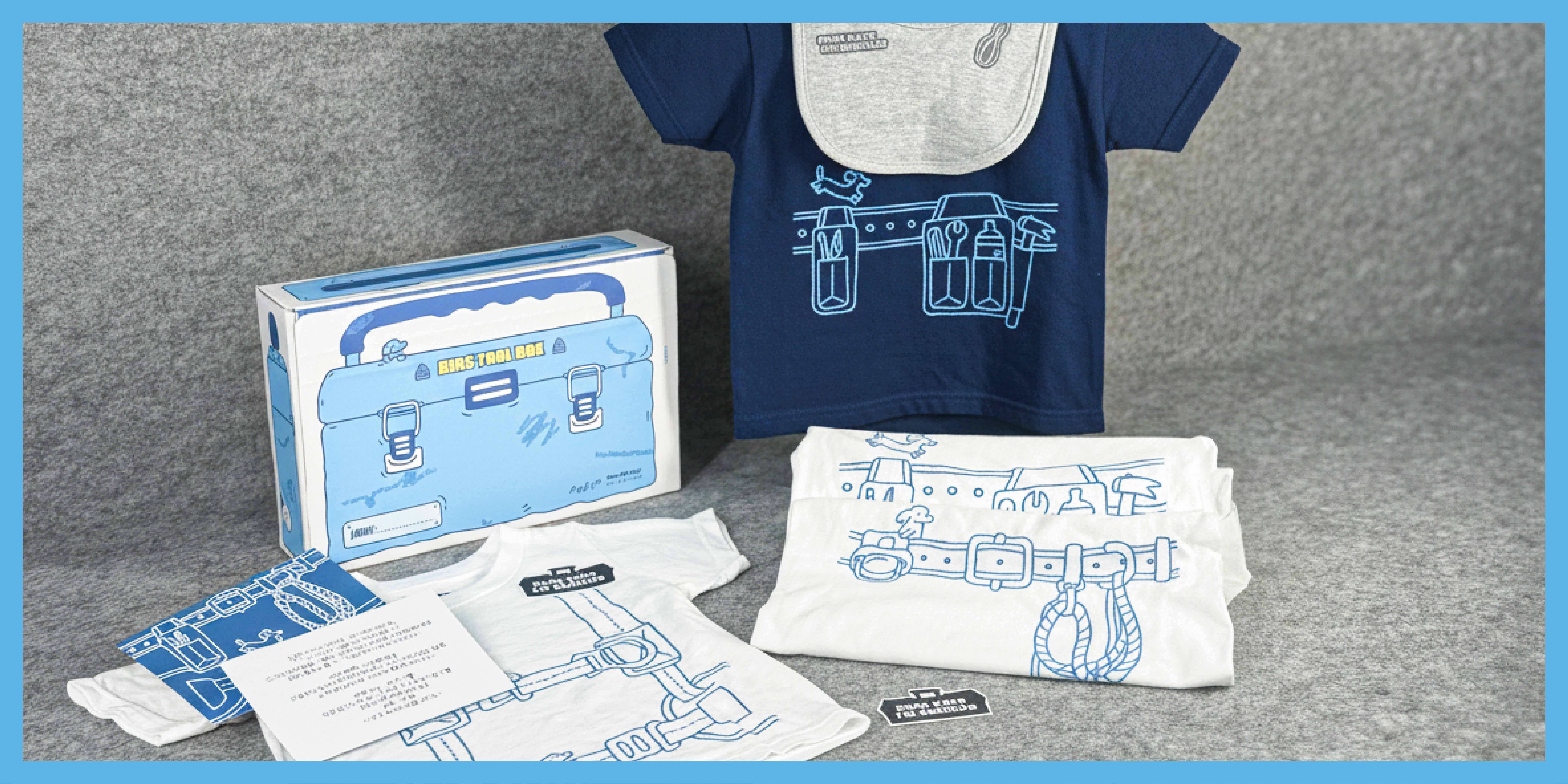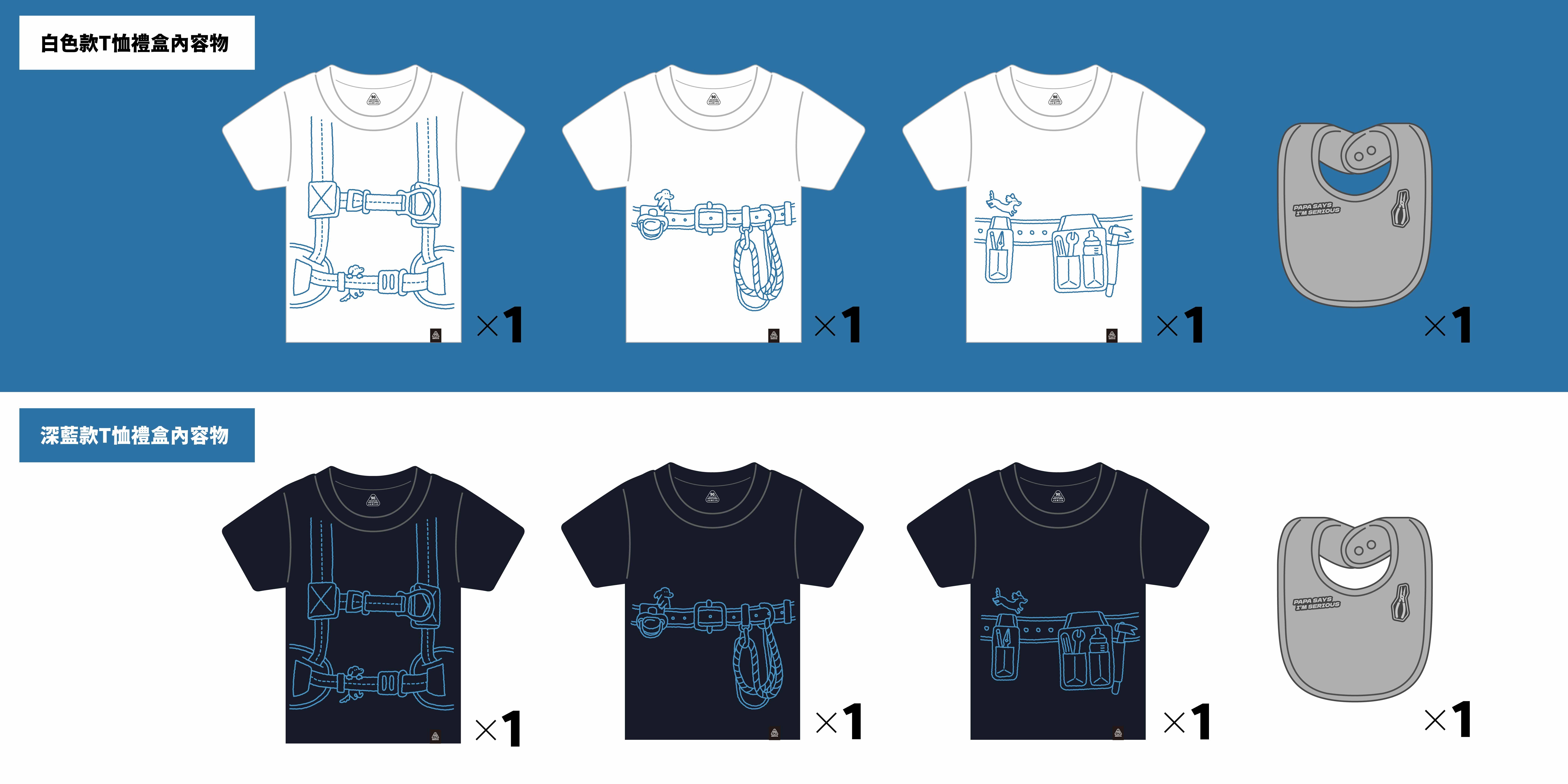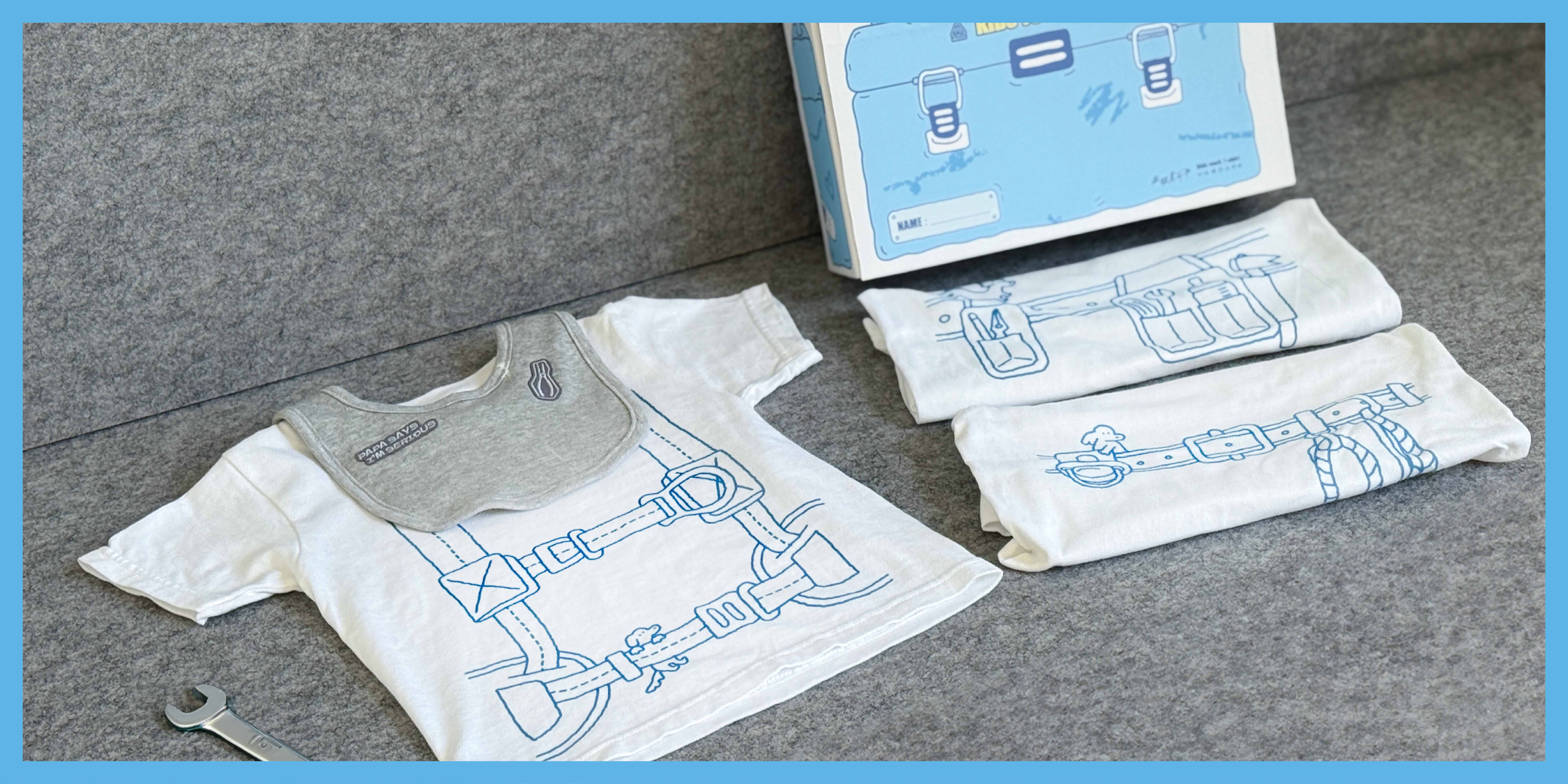 這是給大人的認同,給小孩的祝福 「小小小的衣服,藏著大大的認真。」 三件衣服的圖案,靈感來自不同工種會穿上的腰帶與背袋 象徵專業與責任,也象徵每一份用心的努力。
